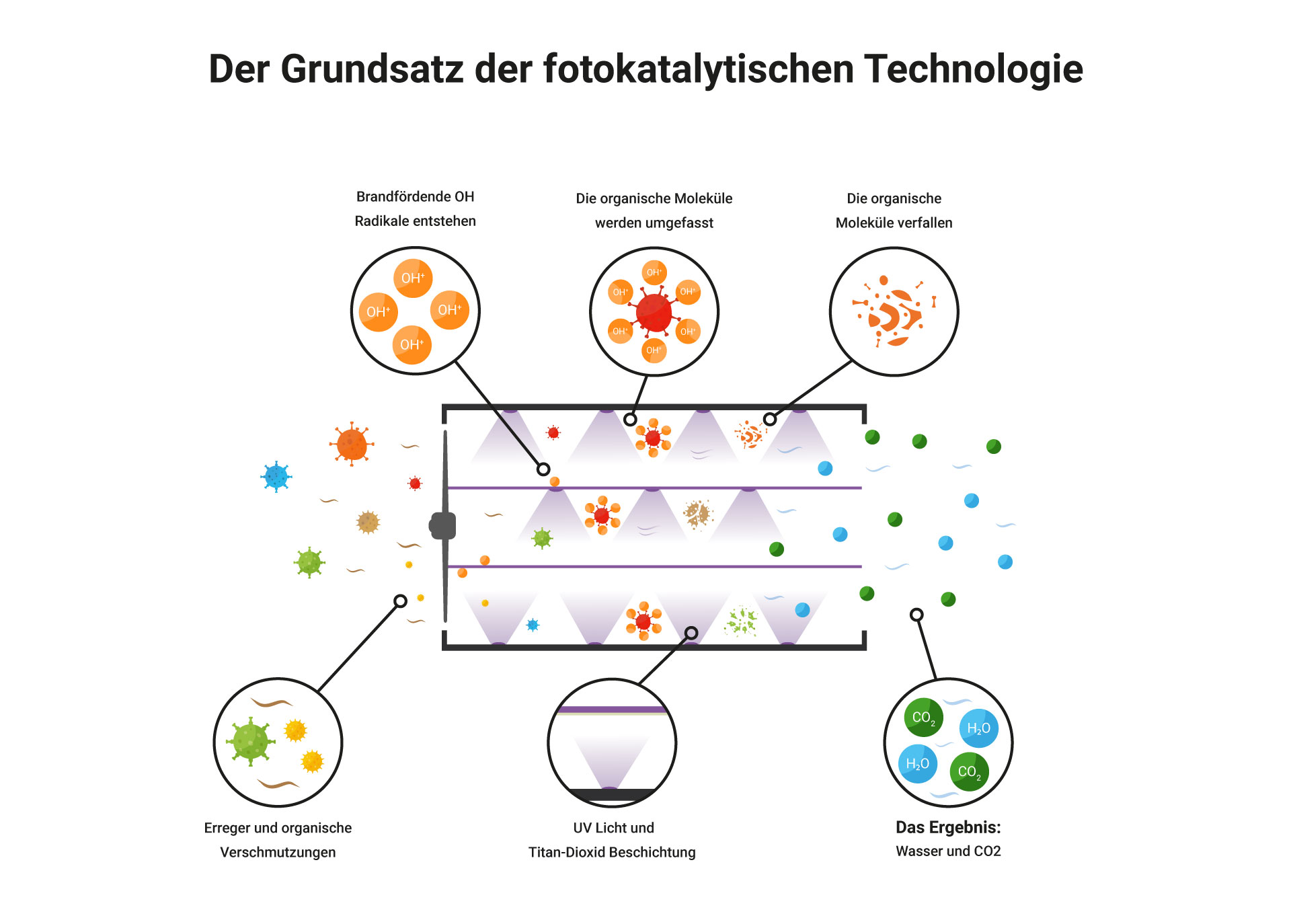 Das Gerät funktioniert filterlos, ozon- und chemikalienfrei. Beim durchlaufenden Betrieb kann es nicht nur desinfizieren, sondern es belastet die Umwelt nie durch Schadstoffemissionen oder Entstehung gefährlicher Abfälle.