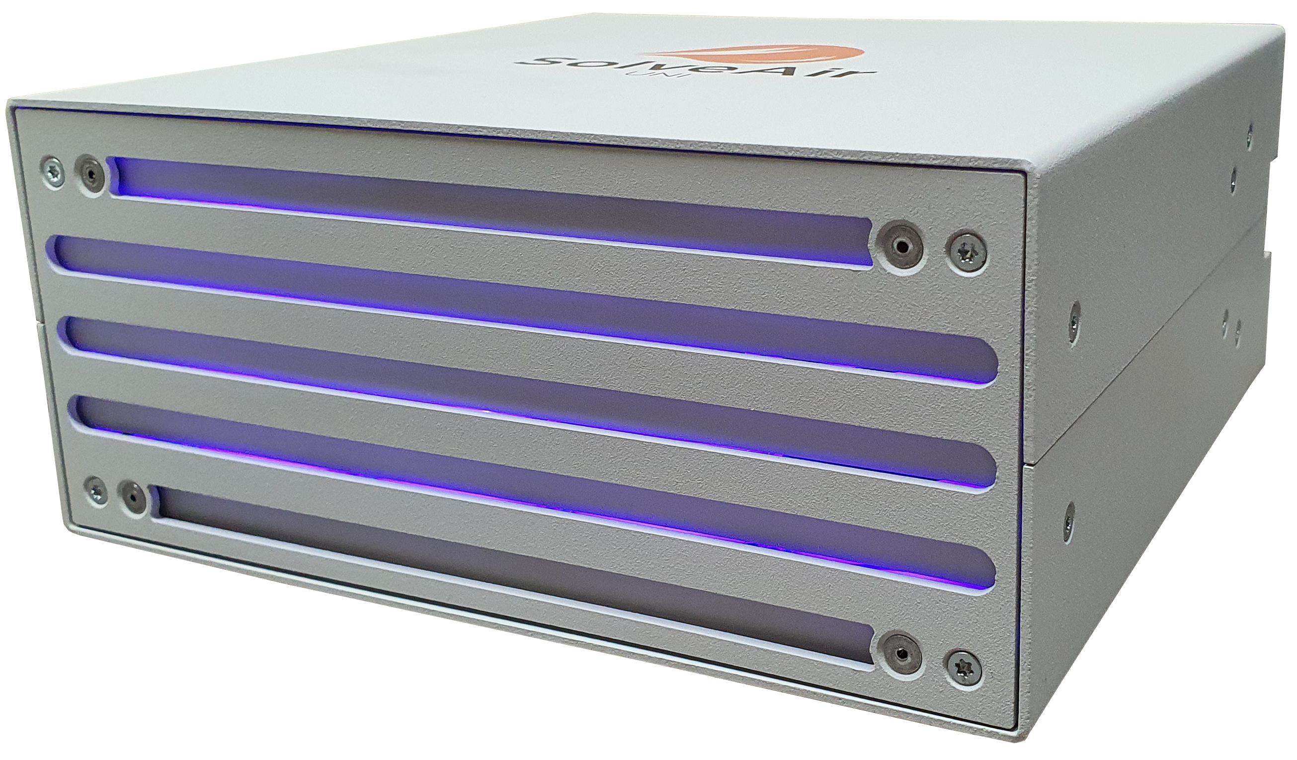 Das Gerät wurde mit höchster Sorgfalt entwickelt und wird in Europa produziert. Der SolveAir UNI ist sehr einfach zu benutzen, und bei durchgehendem Betrieb schützt es wirksam vor Tröpfcheninfektionen. Er funktioniert ohne Chemikalien und ozonfrei, so können Sie sich beim Betrieb des Gerätes im selben Raum problemlos aufhalten und saubere, erregerfreie Luft genießen.